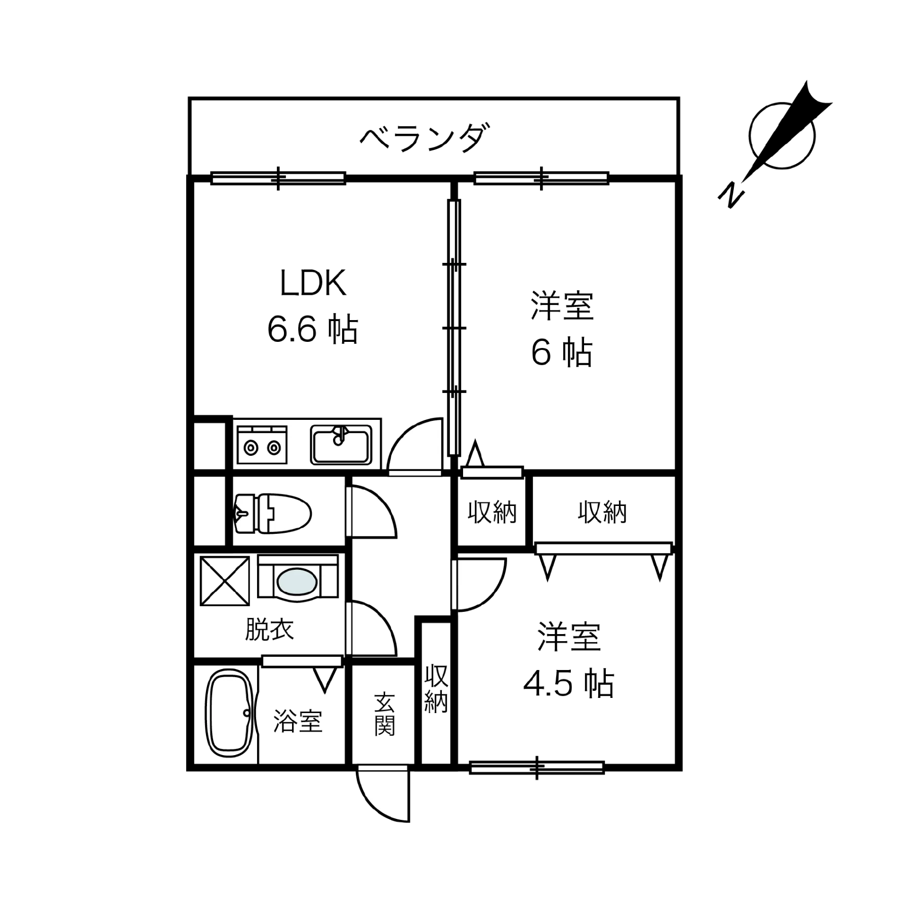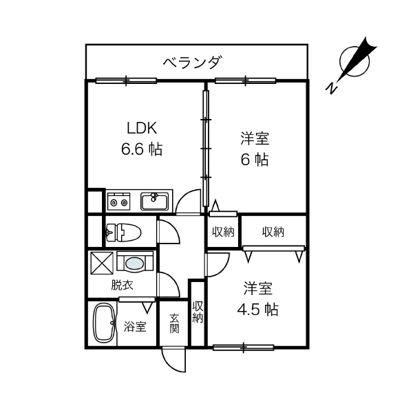 LDK6.8帖、洋室6帖×1、洋室4.5帖×1